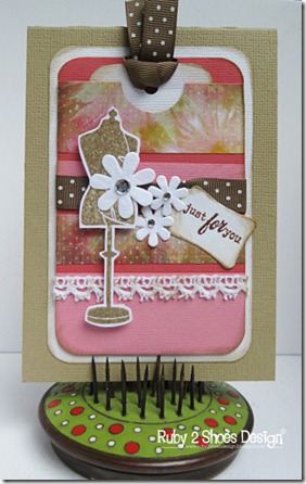 I didn’t have quite the right petal pink so I used a slightly stronger pink. I needed to make a gift card for someone from a few of us so decided to pull out my Go-To-Sketches mag that a very dear friend gave to me, thanks Sav!!! I just LOVE this magazine, as you probably know I’m a bit of a sketch girl. They just give me the mojo that I’m looking for and trigger lots of ideas for me. I made the gift card so that we could put a gift token inside attached to the tag and then write the message inside the card. I hope the rest of the girls like it!