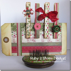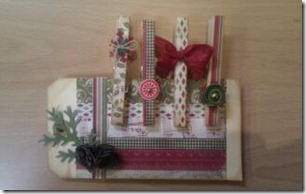 Finally some Christmas pegs. These would be so fun used to hang up Christmas cards, all that you need to add is a bit of baker’s twine and ta da, job done! This was the original set that I made, but it had just a little something missing so I added in the new tattered pinecone by Tim Holtz that you can see in the picture below, mmmm, me likey that die muchly!